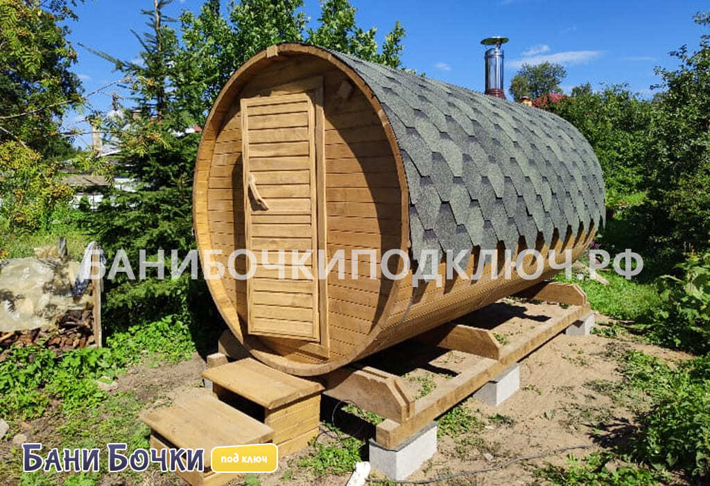 Купить баню бочку в Вологде под ключ недорого от производителя по проектам 2, 3, 4, 5, 6 метров по лучшей цене с доставкой и установкой и сборкой прямо на загородном участке или даче. Используем натуральные и экологичные материалы, работаем по договору и предоплате всего в 10000 рублей, а также даем гарантию в течение 1 года. Они отлично впишутся на любой участок или дачу и будут радовать всю вашу семью, родных, близких и друзей. Не требуют усадки, поэтому париться можно уже в первый день. Позвоните нам, мы подберём под ваш бюджет и потребности.